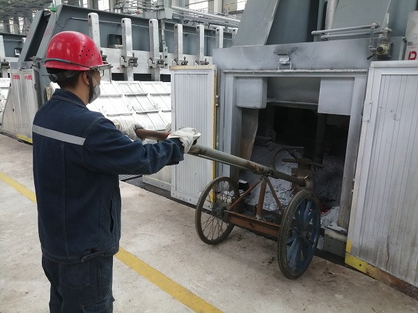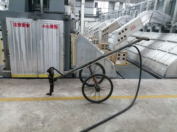 在500KA大型電解槽的前后兩端分別各有一個直徑約35-40公分的圓形洞口,主要用于鋁液吸出、炭渣打撈、物料添加、效應熄滅、爐底勾帶等日常作業,但是由于電解質溶液的不斷凝固,需要定期對前后端洞口進行擴展維護。 日常作業時,作業人員需要使用手動風鎬進行擴孔作業,不但勞動強度大,而且需要長時間近距離貼近開孔處,存在一定的安全隱患。為消除隱患提高效率,在鋁鎂合金分公司電解一車間技術革新小組積極攻關下,一輛高效、簡便,可實現遠距離操控的兩端頭開孔車于近日投入使用。該開孔車采用自行方式及杠桿原理,將手動風鎬固定在開孔車前端,人工開孔距離擴展至2米外,既保證了風鎬開孔力度和擴孔質量,又減少了高溫輻射,勞動強度大幅度降低,開孔速度較以前也提高了3倍以上。 兩端頭開孔車的投入使用,是2024年電解一車間技術革新的首例成果,后續,電解一車間技術革新小組將持續發揚工匠精神和創新精神,讓更多創新成果轉化為現實生產力。 |